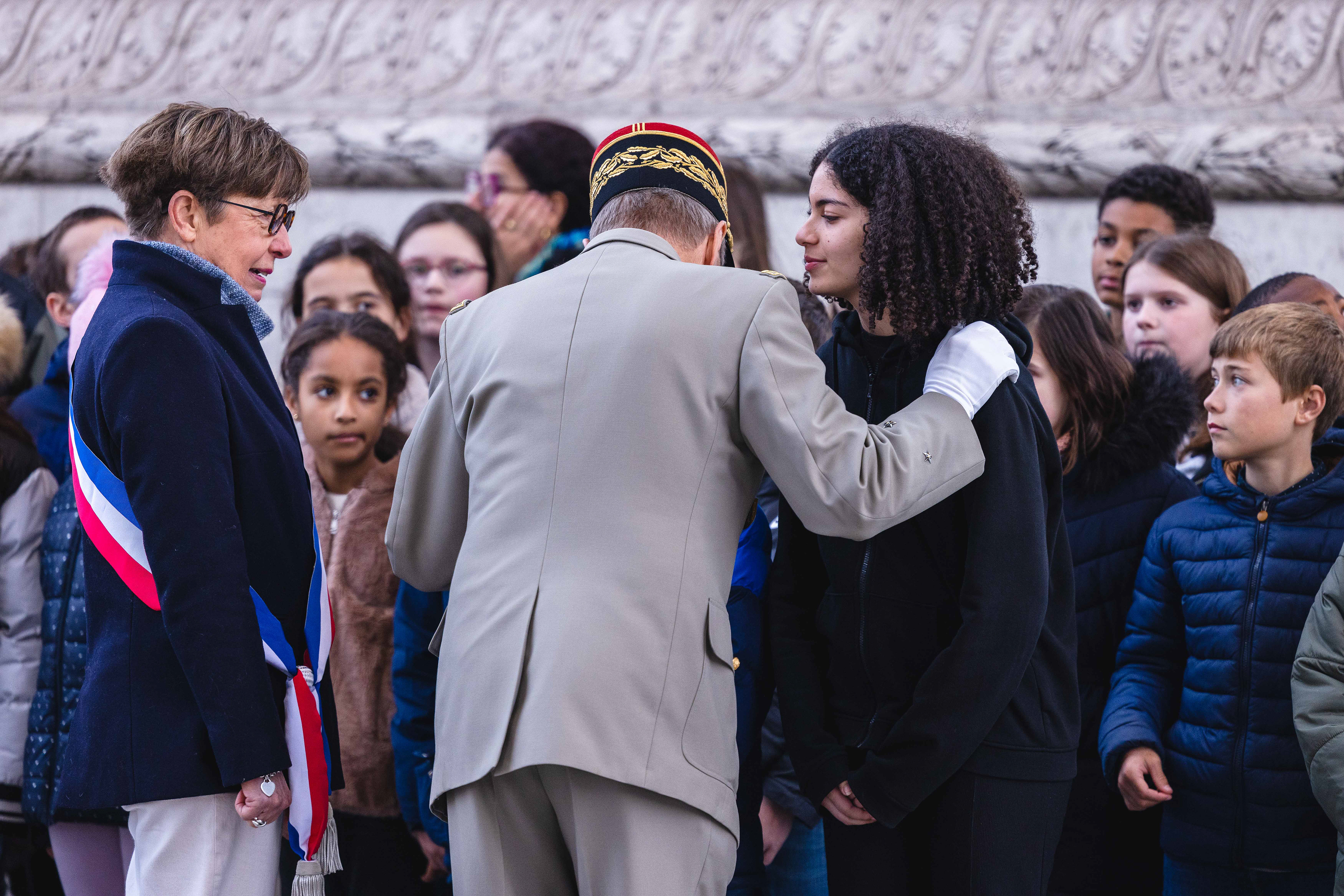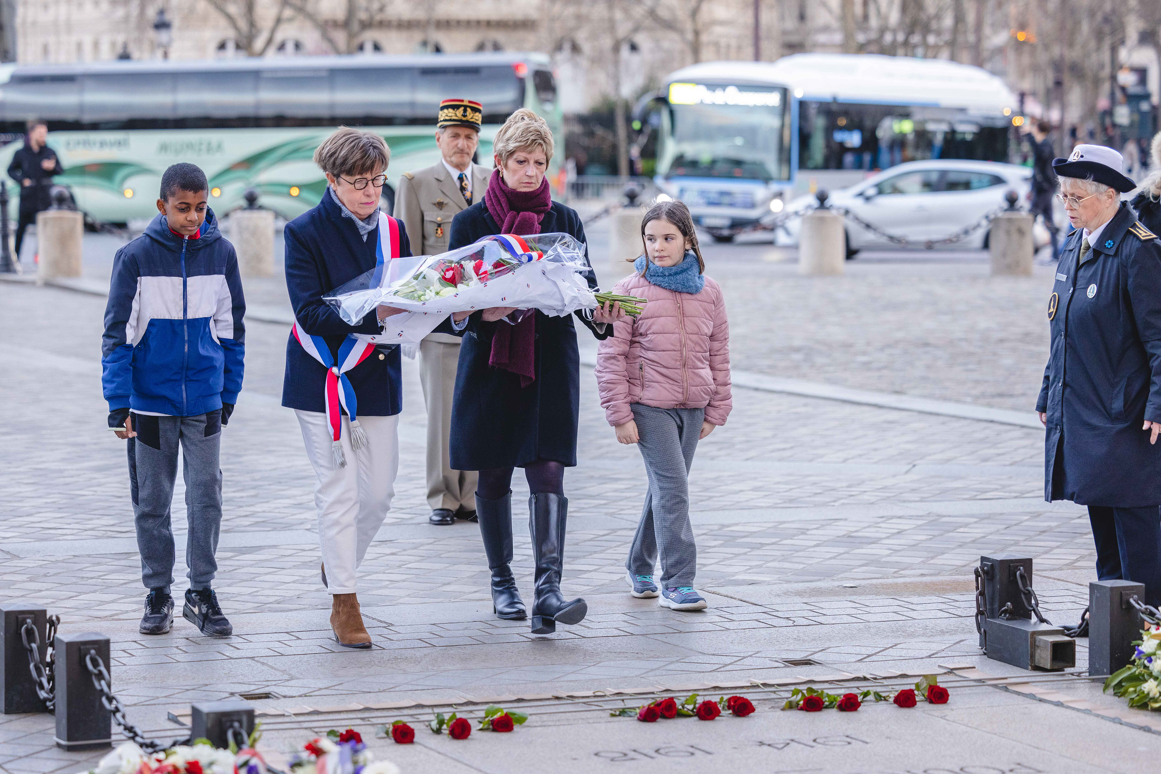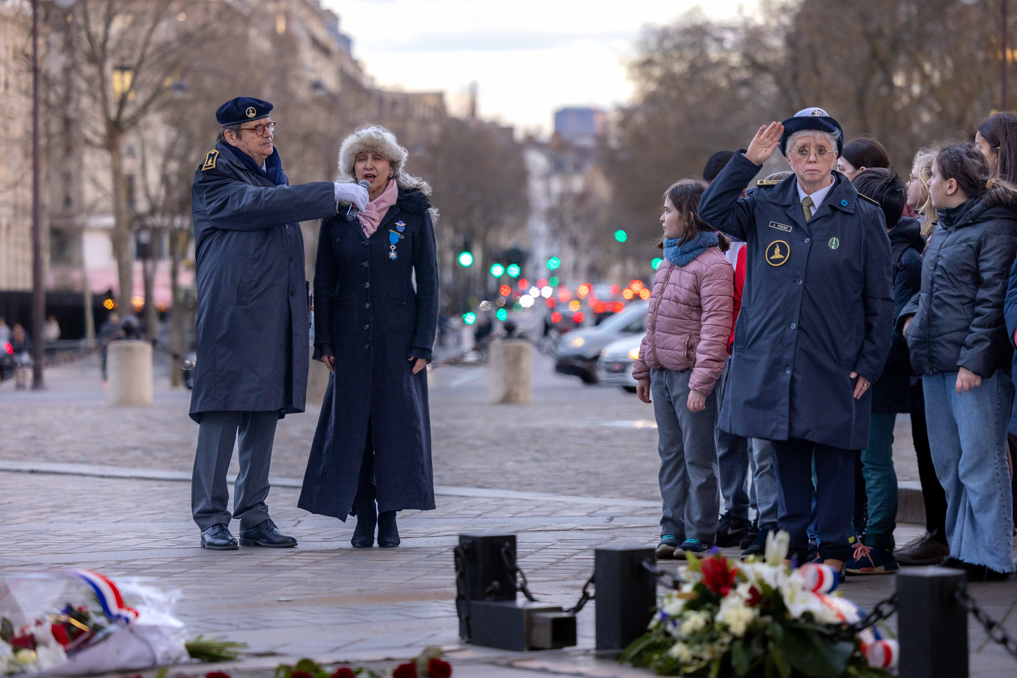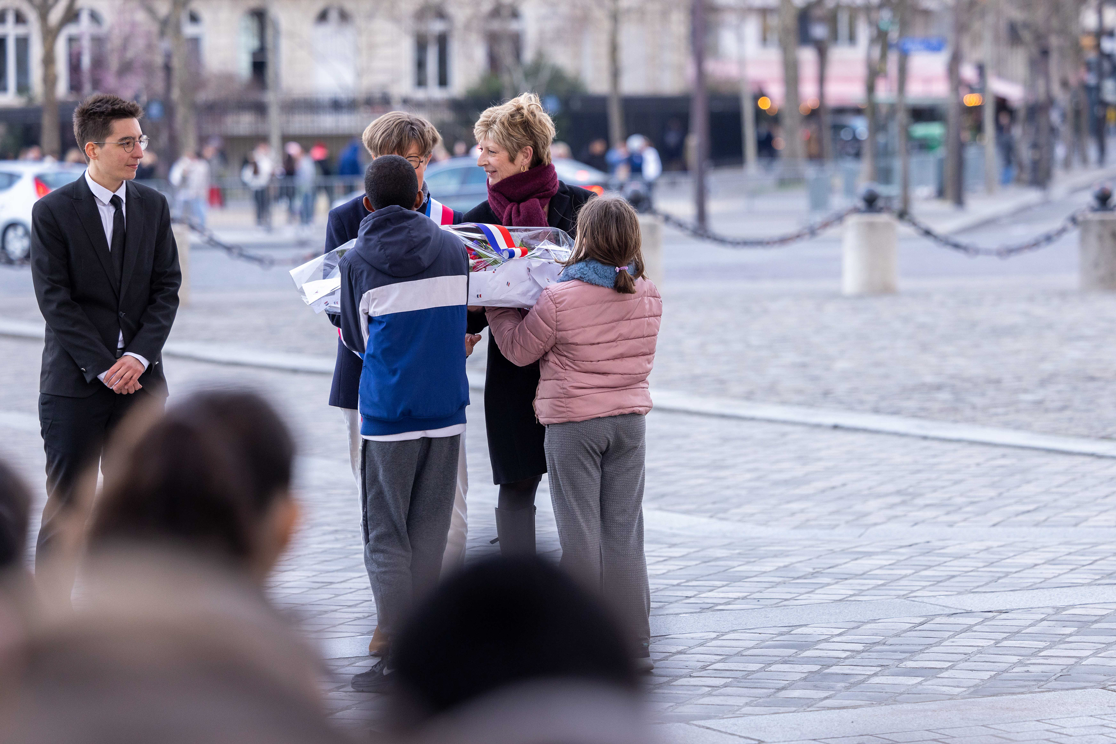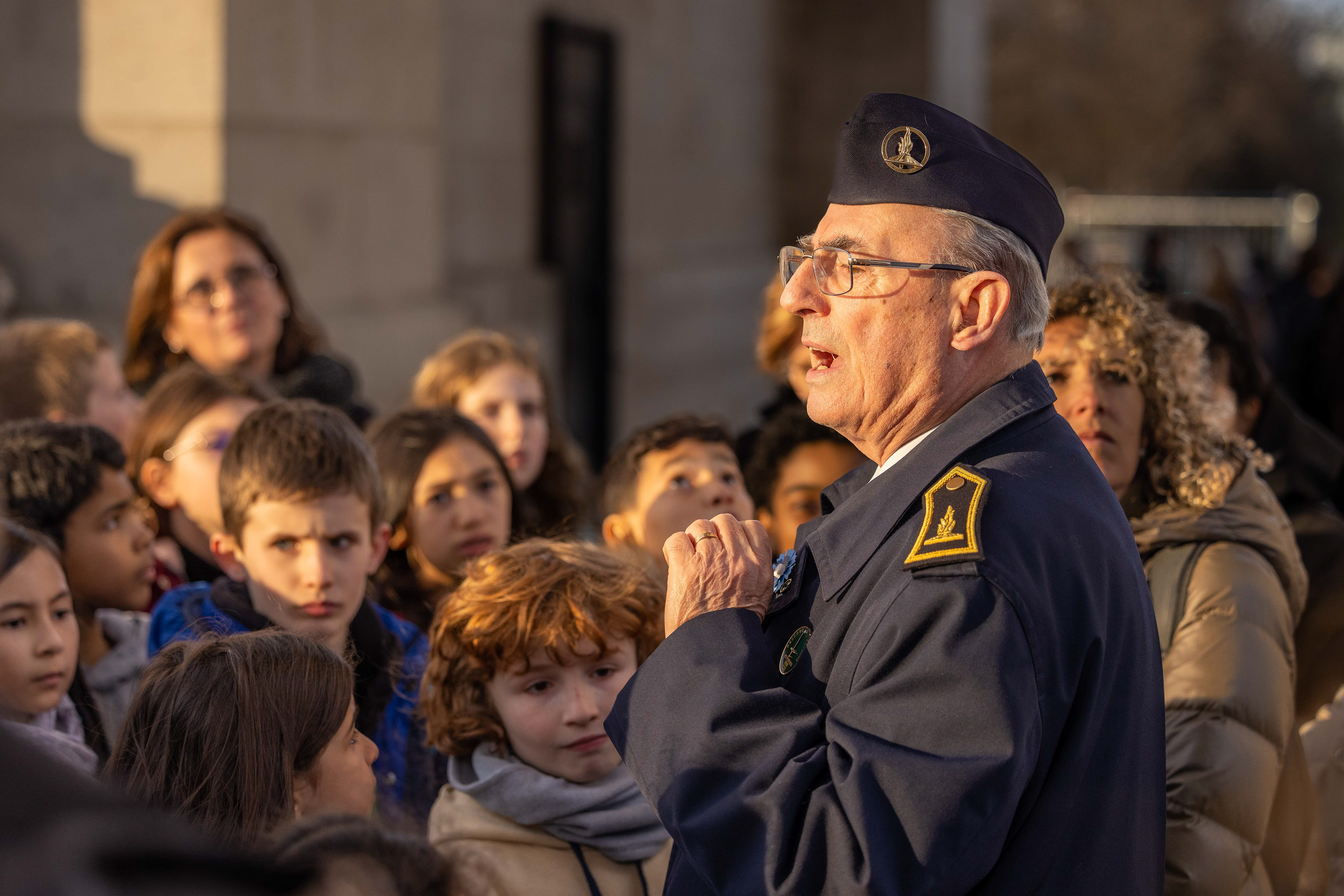 Le ravivage quotidien de la Flamme sur la tombe du soldat inconnu voit souvent défiler des groupes de scolaires afin de familiariser les plus jeunes à ce rituel parisien qui a fêté ces 100 ans en 2023.